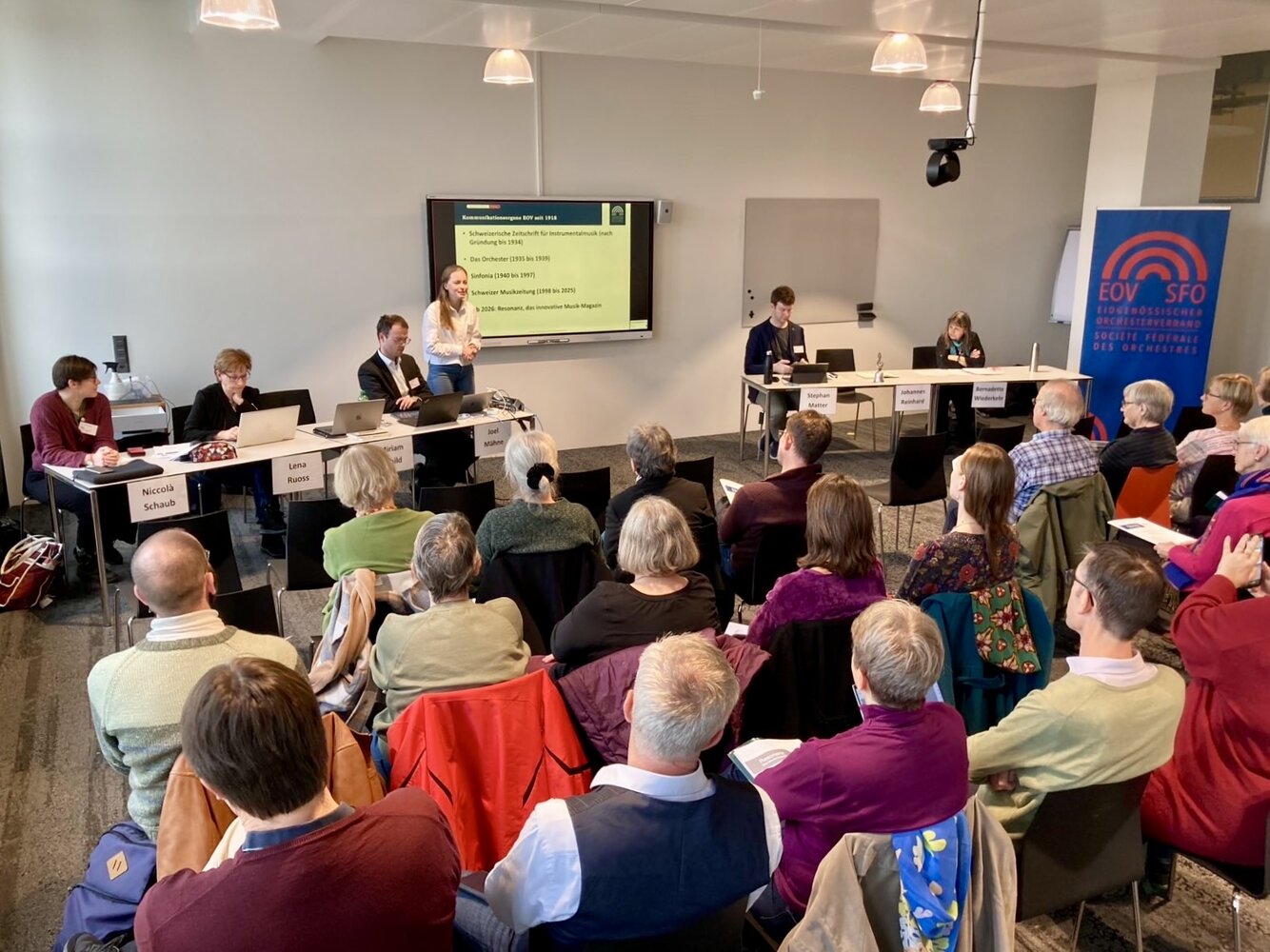 Der Verband betreibt eine Notenbibliothek, welche den EOV Mitgliedern offen steht und erleichtert ihnen die Urheberrechtsabrechnung mit der SUISA. Er berät seine Mitglieder in musikalischen, rechtlichen und organisatorischen Fragen und organisiert regelmässig Fachtagungen, Podiumsdiskussionen und Orchesterwochen.