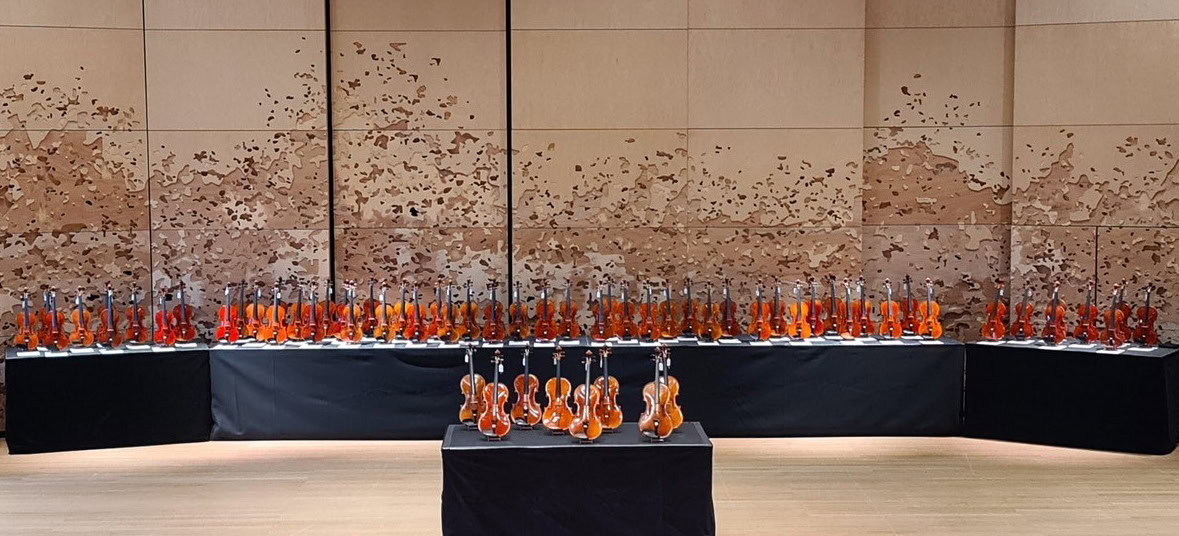 «Forêt d'altos»: All instruments that were submitted and assessed in the two competition categories «Talents d'aujourd'hui» and «Talents de demain». Photo: Swiss violin making school