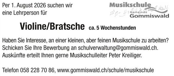 Violino/viola circa 5 lezioni a settimana schulverwaltung@gommiswald.ch www.gommiswald.ch/schule/musikschule