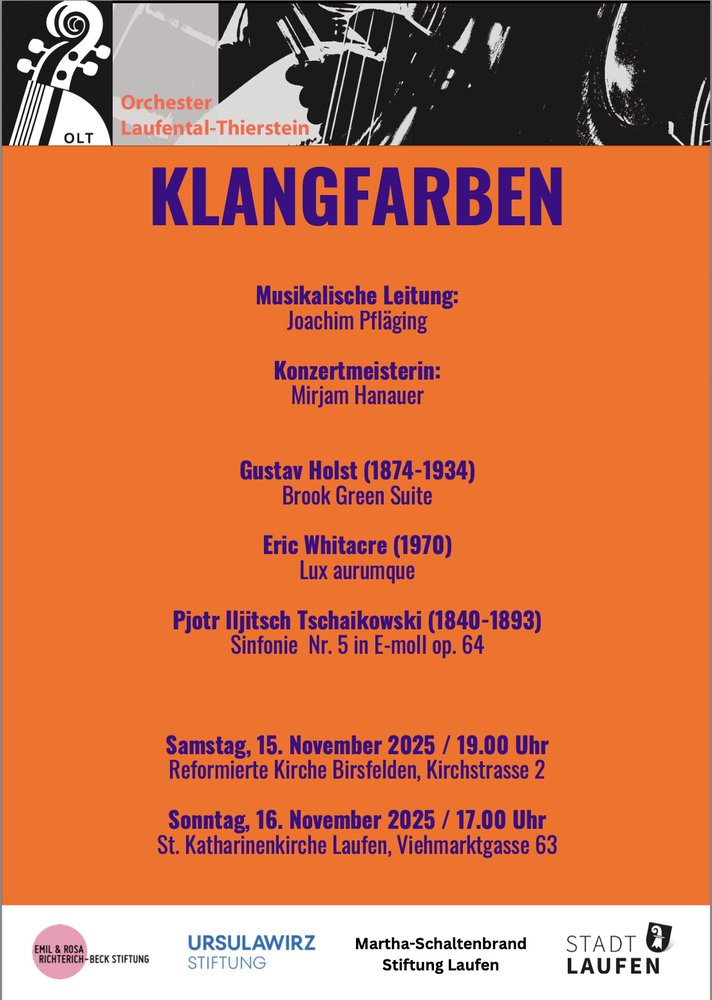 Unser Streichorchester eröffnet das Konzert mit der “Brook Green Suite“ von Gustav Holst, gefolgt von Eric Whitacres “Lux Aurumque”, das ausschliesslich von unseren Bläserinnen und Bläsern interpretiert wird. In der 5. Sinfonie von Tschaikowski führen wir alle Register wieder zusammen und lassen das Publikum das Klangbild der vollen sinfonischen Besetzung in ihrer ganzen Fülle erleben.