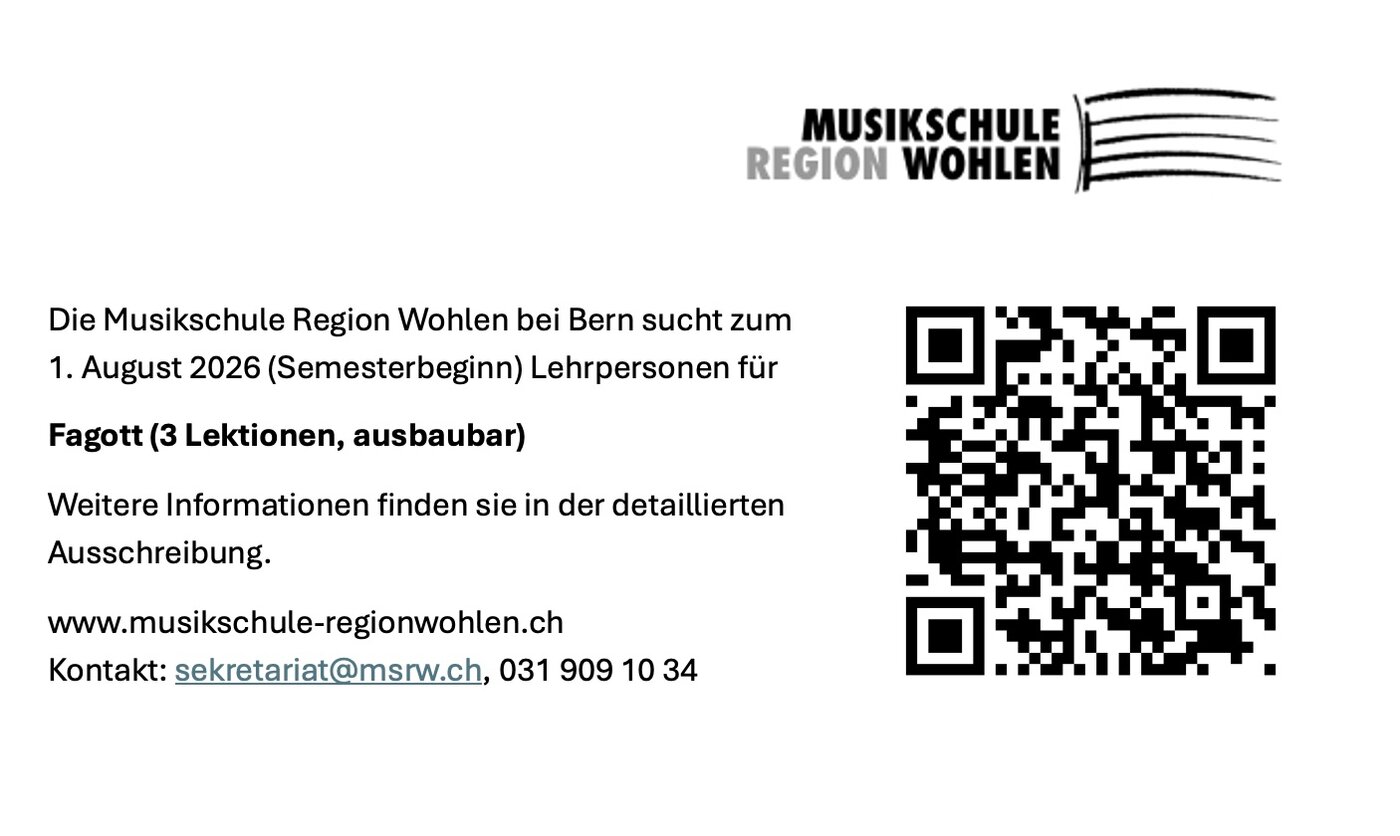 Lehrperson Fagott (5-10 %, ausbaubar)