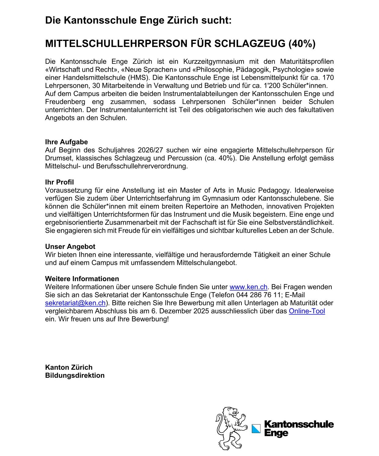 MITTELSCHULLEHRPERSON FÜR SCHLAGZEUG